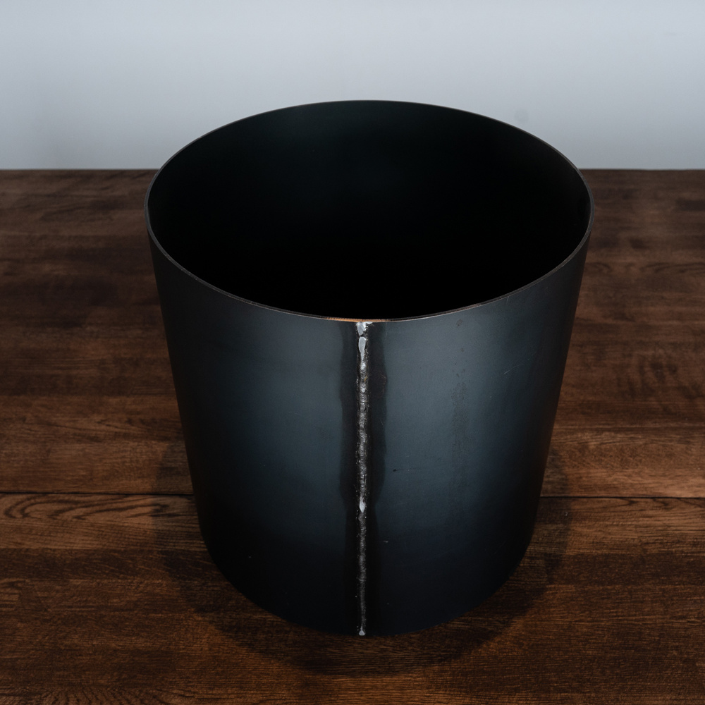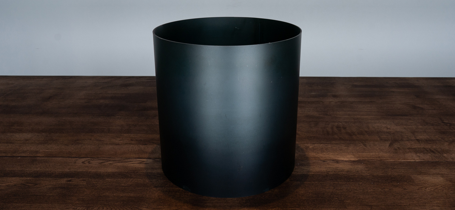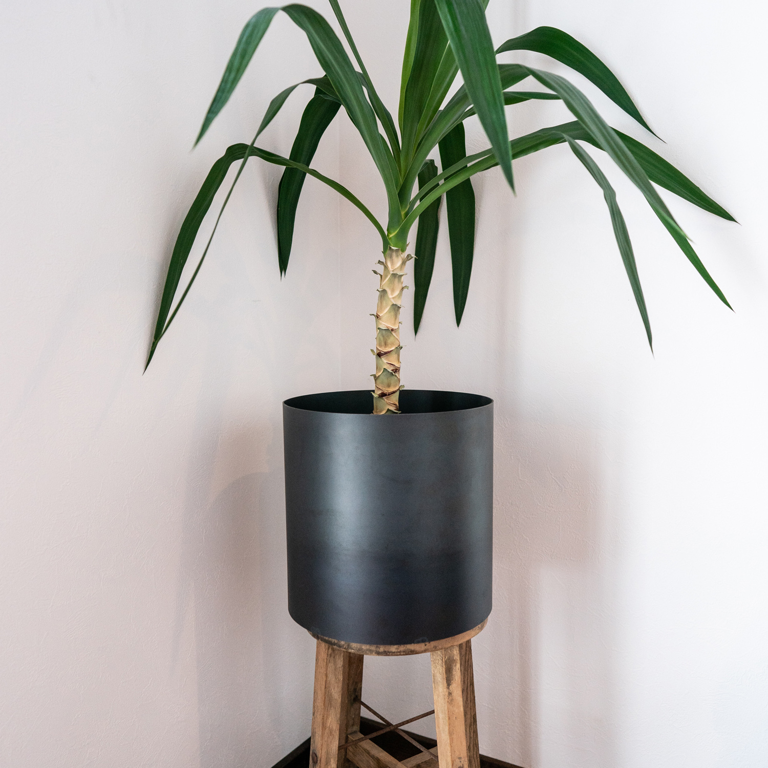 鉄の重厚感プラス、鉄とは思えない美しい曲線美を活かした丸い箱。観葉植物や花など緑との相性も抜群。